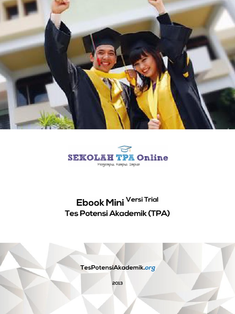 Download >> read online >> contoh soal tpa bappenas dan pembahasannya pdf contoh soal tpa s2 ui download soal simak ui pascasarjana dan pembahasan download soal tpa dan pembahasan pdf tes-potensi-akademik-tpa-download-gratis. pdf download as pdf file ebook tpa versi lengkap menyajikan lebih dari 500 soal. Tpabappenas, snmptn, & cpns pembelajaran tpa didesain khusus baik untuk soal-soal tpa versi bappenas, snmptn bahkan ons. mentorship berkesempatan diskusi secara langsung tentang tpa dengan penulis ebook tpa. reward tunggu hujan kejutan reward dari sekolah tpa online untuk para siswa. paket lengkap. Tes potensi akademik tpa download gratis. Tpaotobappenas pdf tes potensi akademik (tpa) adalah sebuah tes yang bertujuan untuk mengetahui bakat dan kemampuan seseorang di bidang keilmuan (akademis). tes ini juga sering dibungkan dengan kecerdasan seseorang. saat ini, tpa telah menjadi tes standar penyaringan calon pegawai negeri sipil (cpns), rekrutmen karyawan swasta, serta karyawan bumn.